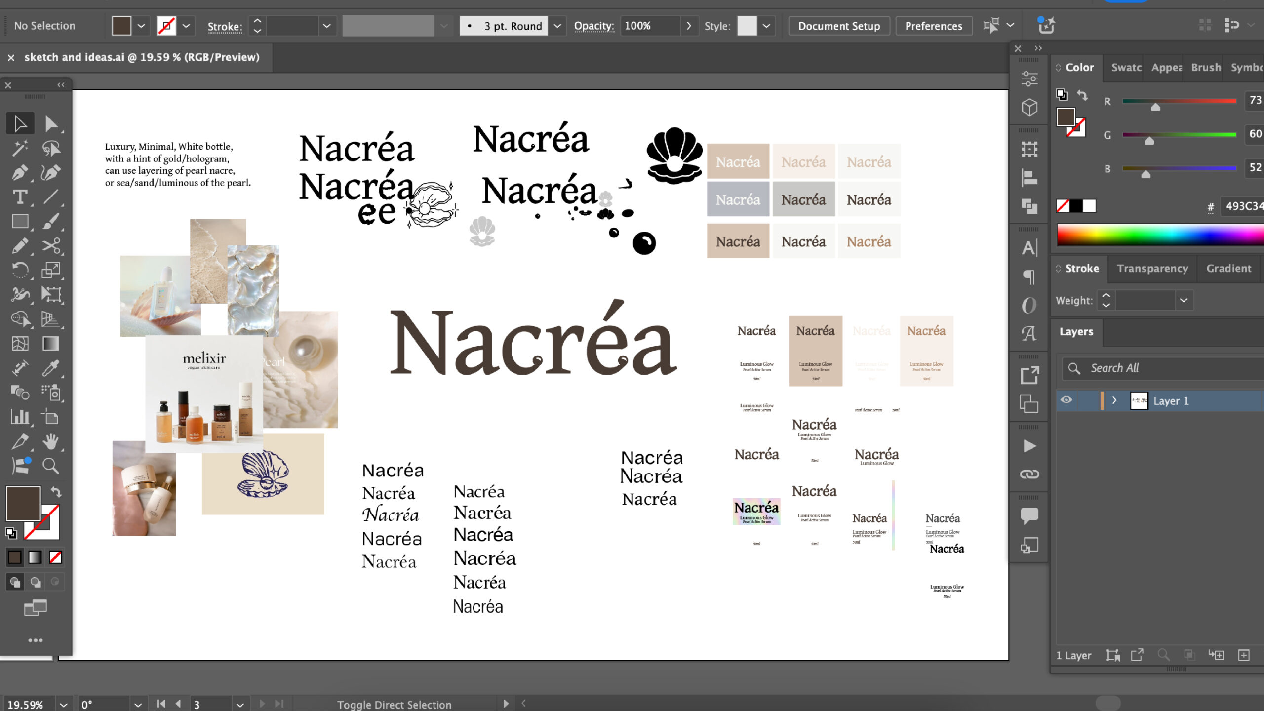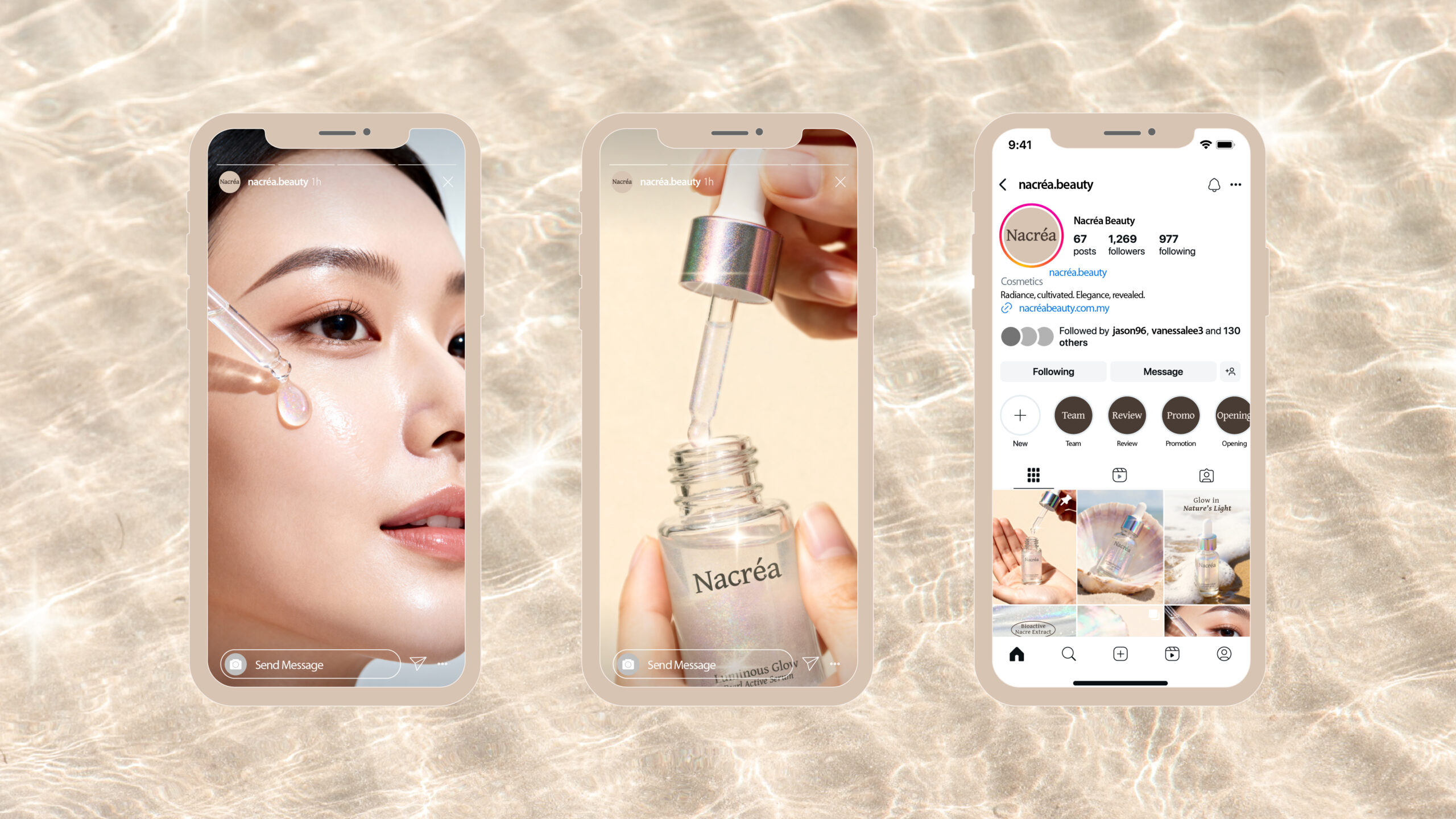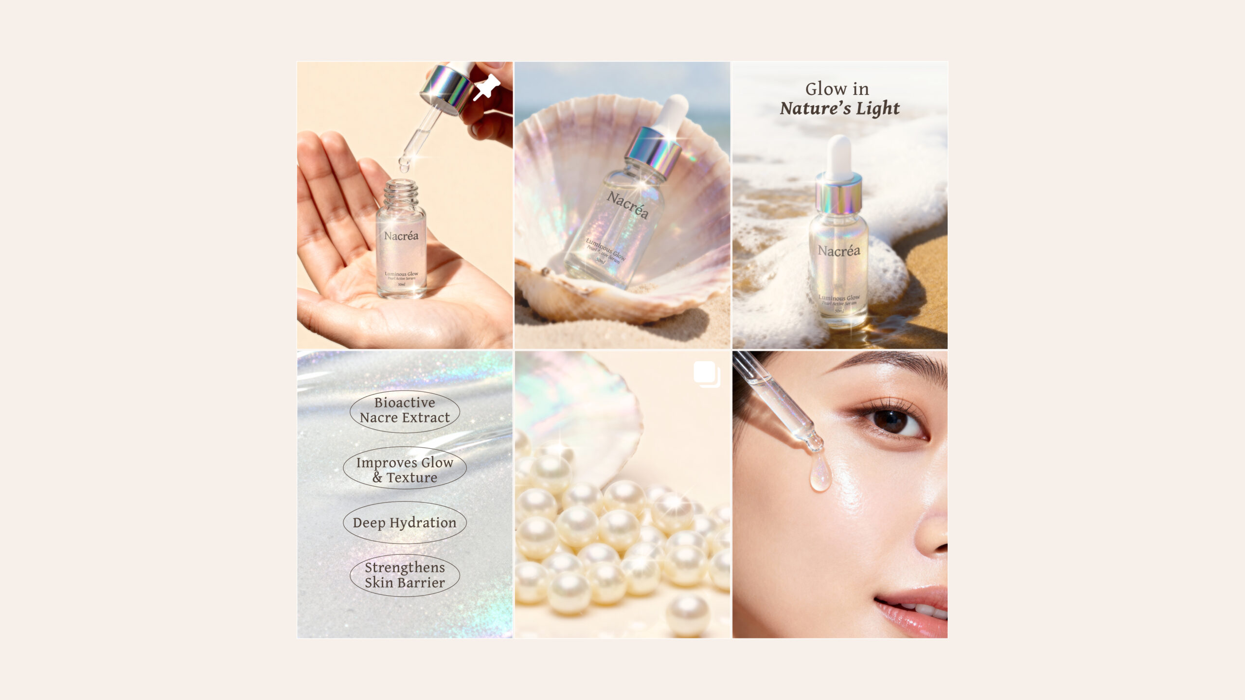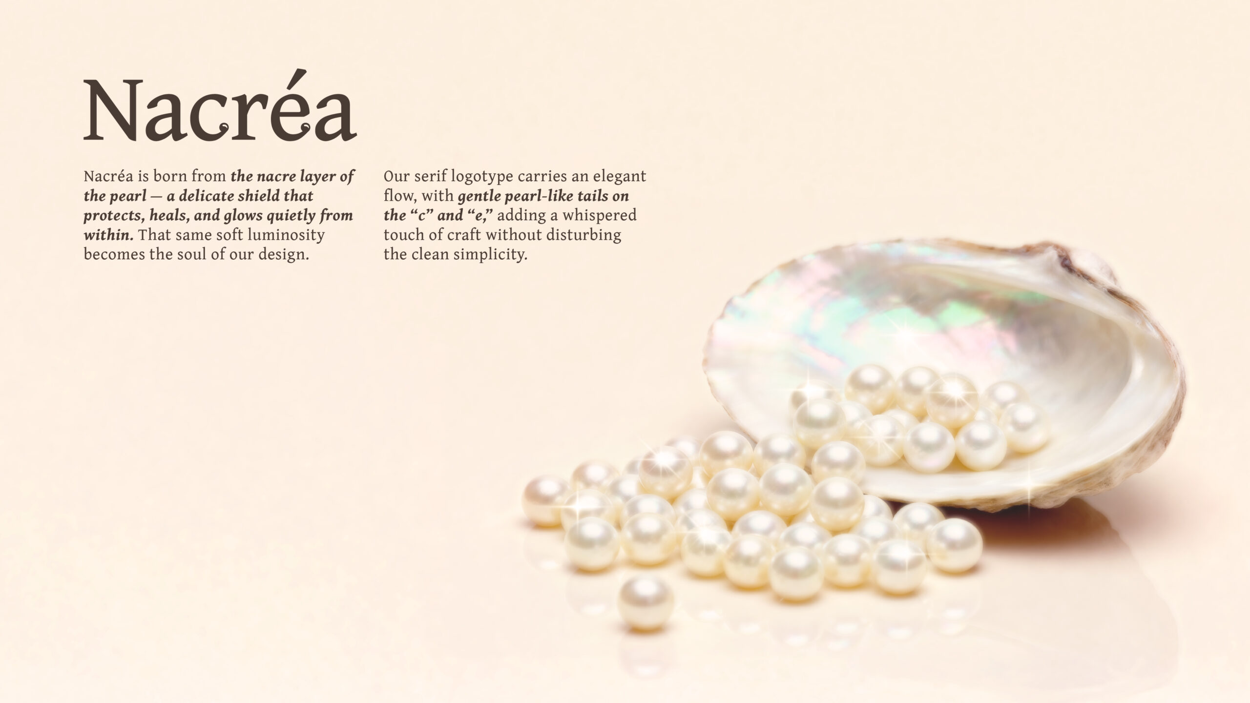 A cohesive identity that transforms nacre’s natural radiance into a modern, premium brand experience.